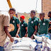 Waziri Mkuu Kassim Majaliwa akisalimiana na Rais wa Jamhuri ya Burundi Meja Jenerali Evariste Ndayishimiye wakati wa hafla ya uwekaji wa jiwe la msingi la ujenzi wa reli ya kisasa (SGR) kipande cha saba na nane kutoka Uvinza (Tanzania) hadi Musongati (Burundi), Agosti 16, 2025 Musingati nchini Burundi. Mheshimiwa Majaliwa amemwakilisha Rais Dkt. Samia Suluhu Hassan katika uzinduzi huo. (Picha na Ofisi ya Waziri Mkuu)