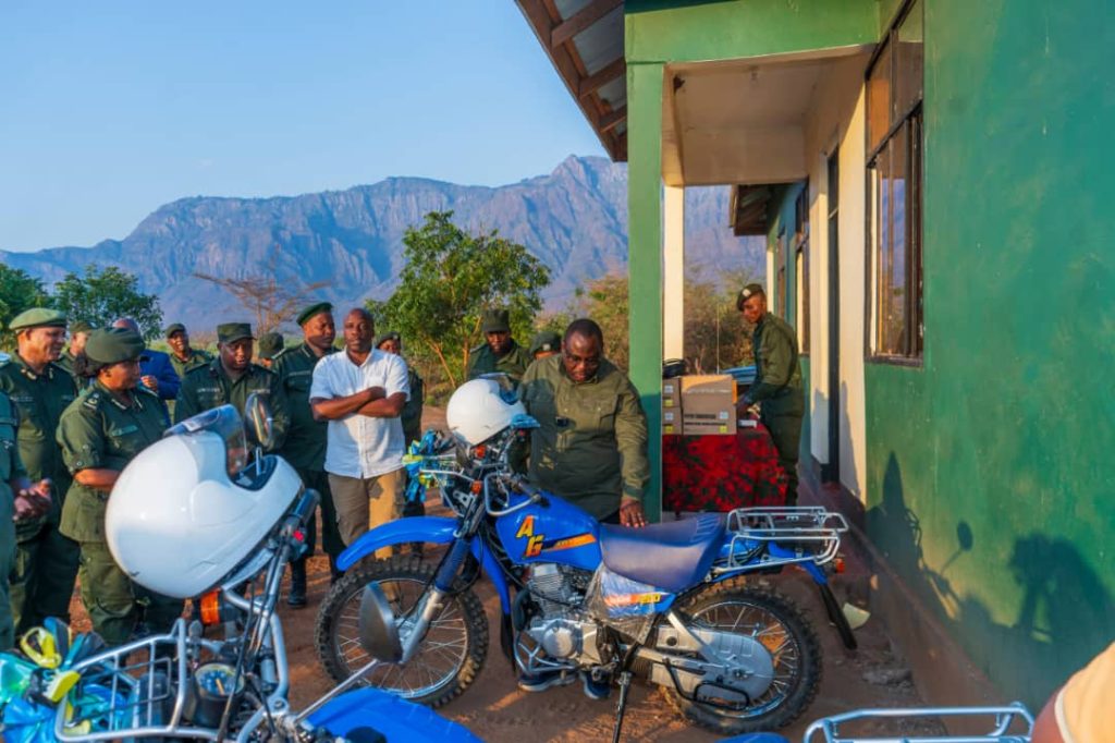 Miongoni mwa vifaa vilivyokabidhiwa kwa Mkuu wa hifadhi ya Mkomazi ni pamoja na ndege nyuki,mabomu baridi pamoja na pikipiki mbili za doria kwa askari wa uhifadhi.