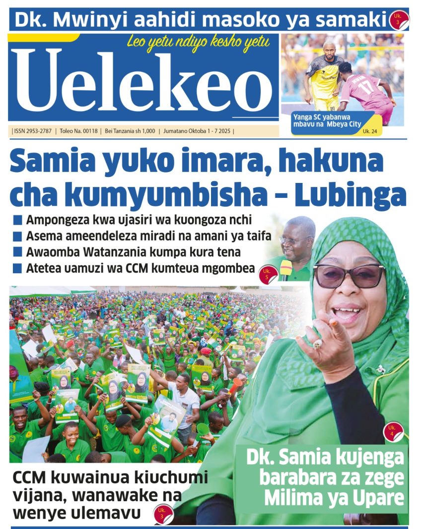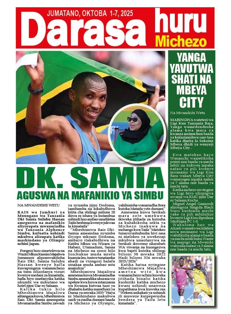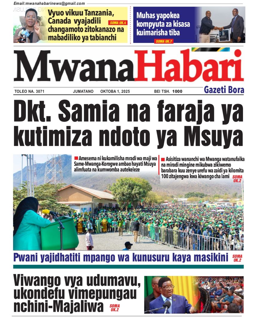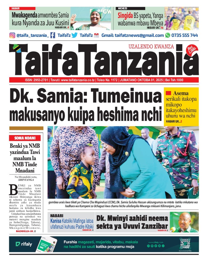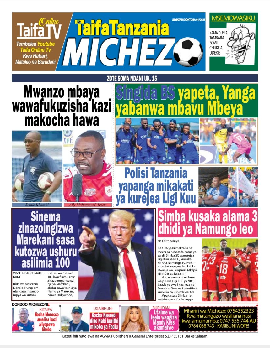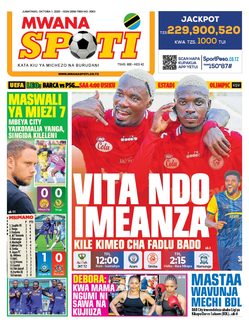 01/10/2025 0 Comment 0 Views HAYA HAPA MAGAZETI YA LEO OKTOBA 1, 2025 by Suzzy Mathias TRA WAFUTURISHA WADAU, WASISITIZA UMUHIMU WA KULIPA KODI NAIBU KATIBU MKUU TAMISEMI ATEMBELEA BANDA LA (BoT) SABASANA SHARE Michezo Burudani
