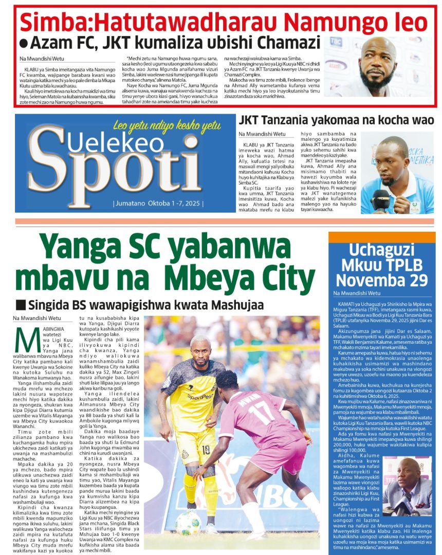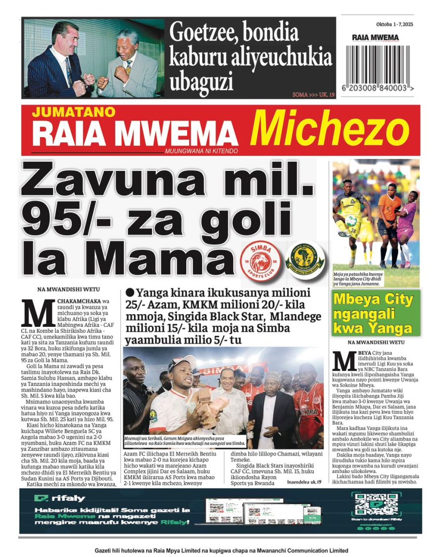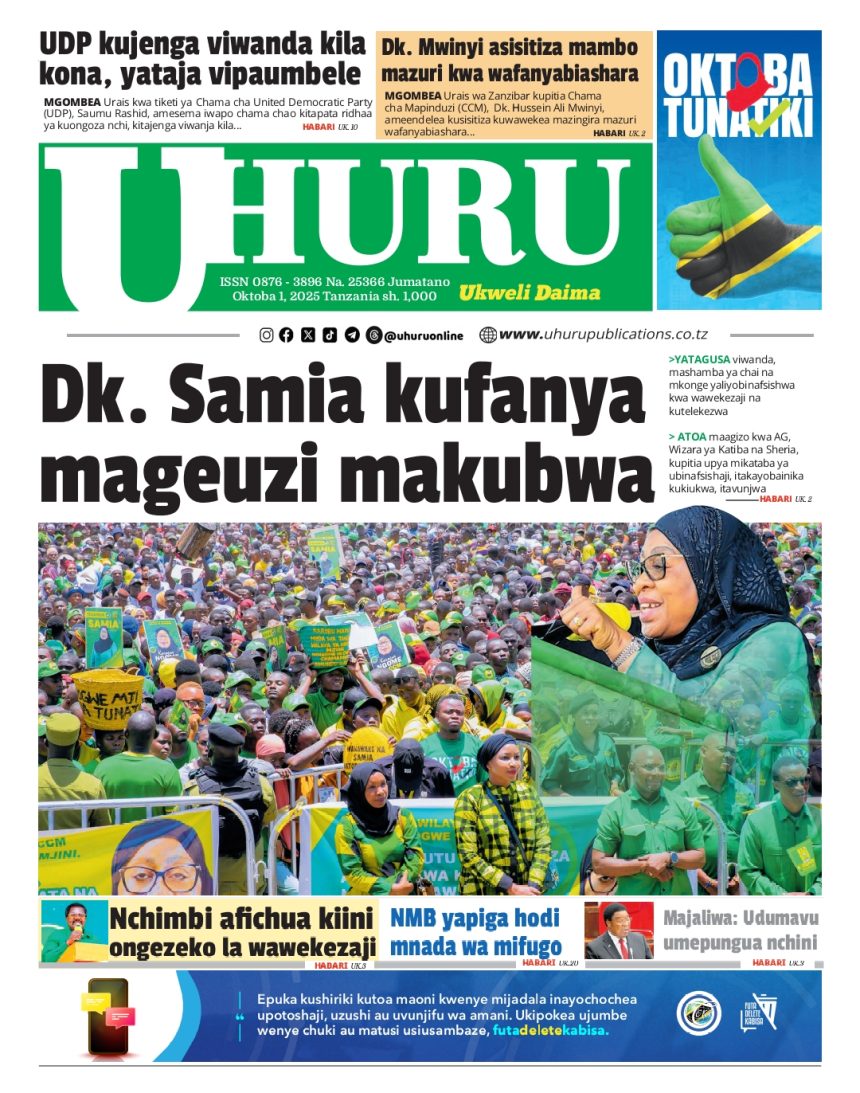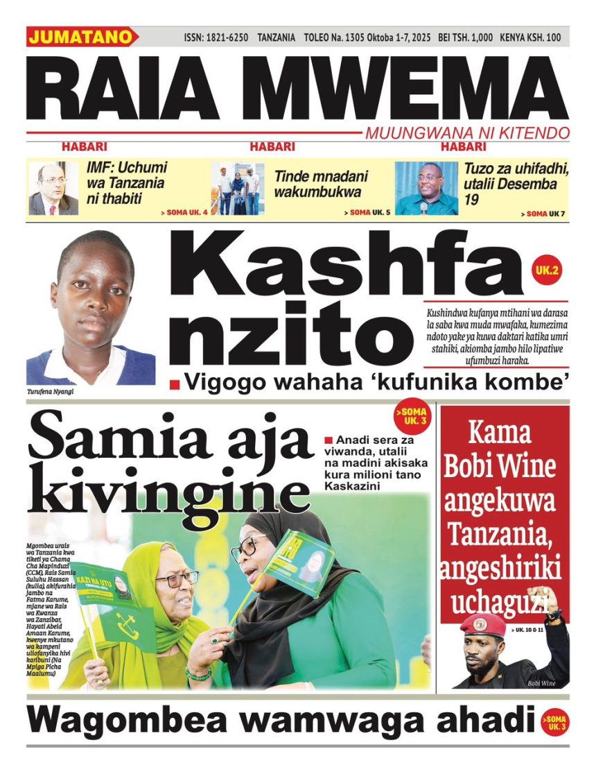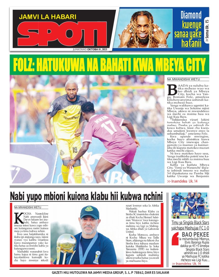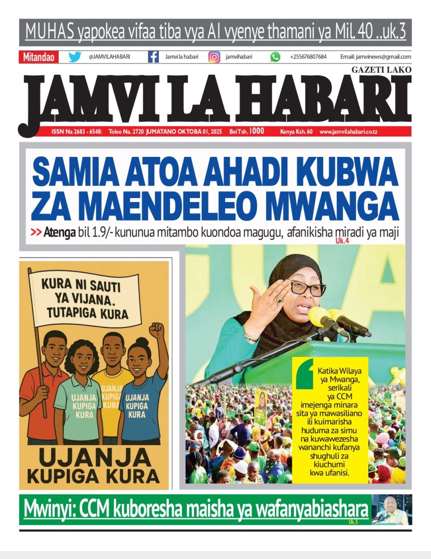 01/10/2025 0 Comment 0 Views HAYA HAPA MAGAZETI YA LEO OKTOBA 1, 2025 by Suzzy Mathias TRA WAFUTURISHA WADAU, WASISITIZA UMUHIMU WA KULIPA KODI NAIBU KATIBU MKUU TAMISEMI ATEMBELEA BANDA LA (BoT) SABASANA SHARE Michezo Burudani