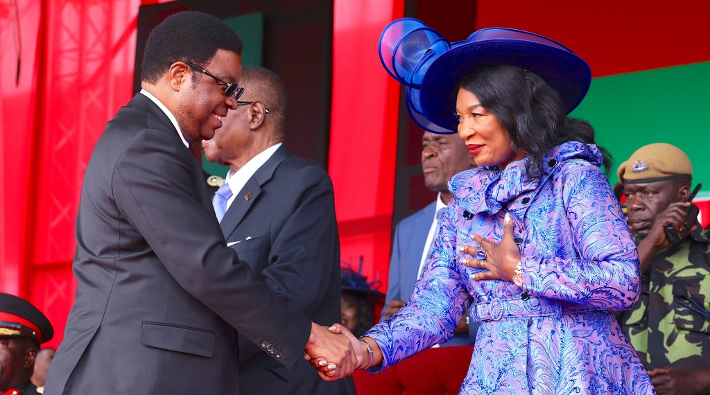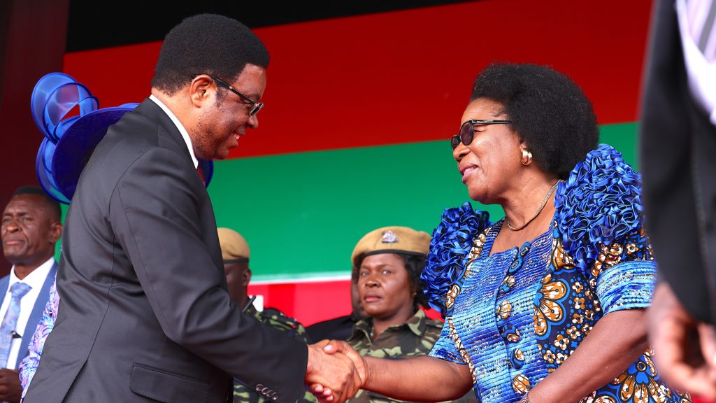Waziri Mkuu, Kassim Majaliwa akisalimiana na Makamu wa Rais wa Malawi na Jaji Mstaafu Dkt. Jane Ansah alipomwakilisaha Rais Dkt. Samia Suluhu Hassan katika Uapisho wa Rais mteule wa Malawi, Profesa. Arthur. Mutharika uliofanyika kwenye uwanja wa Kamuzu, Oktoba4, 2025. (Picha na Ofisi ya Wziari Mkuu)