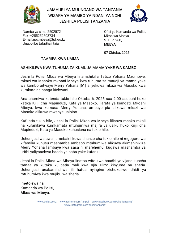 07/10/2025 0 Comment 2 Views ASHIKILIWA KWA TUHUMA ZA KUMUUA MAMA YAKE WA KAMBO by 4dmin JUKWAA LA BUSINESS AND EDUCATION KUONGEZA NGUVU MAONESHO YA 88 KANDA YA MASHARIKI Habari kubwa za Magazeti ya Tanzania leo January 15, 2024 SHARE Matukio Habari
