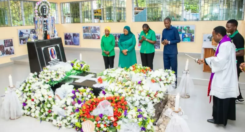 Mgombea wa nafasi ya Rais wa Jamhuri ya Muungano wa Tanzania na Mwenyekiti wa CCM, Dkt. Samia Suluhu Hassan, aliomba dua kwenye Kaburi la Rais wa Awamu ya Tano, Hayati Dkt. John Pombe Magufuli, katika eneo la Rubambangwe, Chato mkoani Geita, tarehe 13 Oktoba 2025.