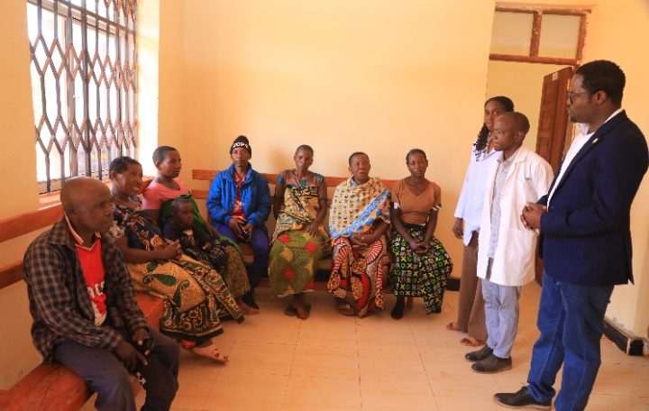 Katibu wa afya wa Halmashauri ya Wilaya Mbinga Mkoani Ruvuma George Mhina kulia,akizungumza na baadhi ya wagonjwa waliofika kupata huduma za matibabu katika zahanati ya Lugali.