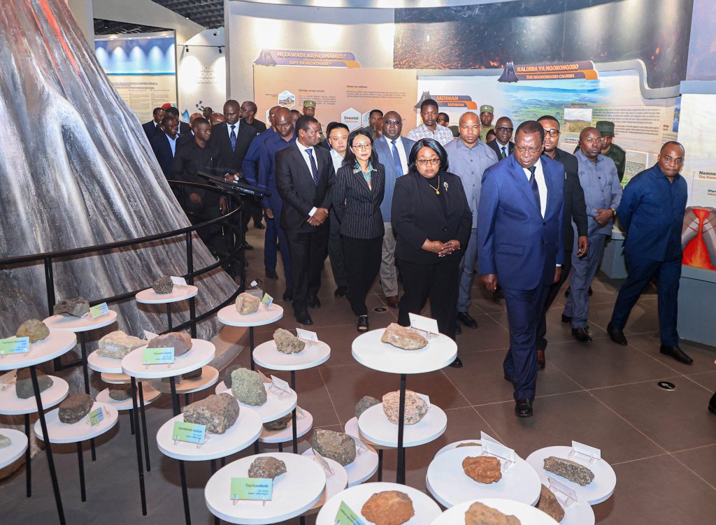 Makamu wa Rais wa Jamhuri ya Muungano wa Tanzania Mhe. Dkt. Philip Mpango akiwa na Balozi wa China nchini Tanzania Mhe. Chen Mingjian akizindua Jengo la Makumbusho ya Eneo la Hifadhi ya Urithi wa Kijiolojia la Ngorongoro – Lengai lililopo Karatu mkoani Arusha leo tarehe 16 Oktoba 2025.