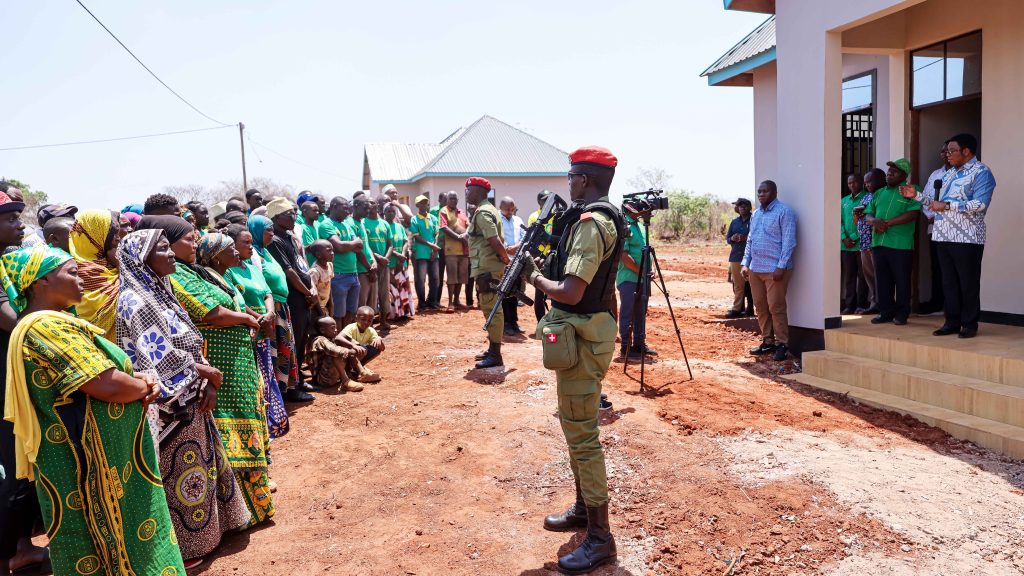 Waziri Mkuu, Kassim Majaliwa akiwasalimia wananchi baada ya kukagua ujenzi wa kituo cha Polisi Nandagala, Ruangwa mkoani Lindi, ambacho kimegharimu kiasi cha shilingi milioni 194.3 kituo hicho kitahudumia wananchi vijiji 32 walioko katika kata 8 za wilaya hiyo, Oktoba 23, 2025 (Picha na Ofisi ya Waziri Mkuu)