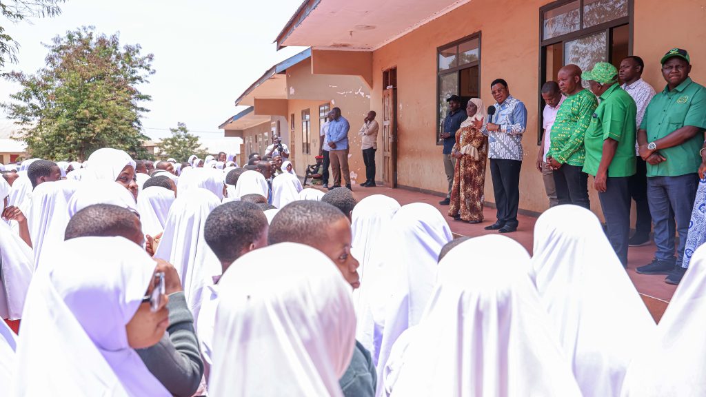 Waziri Mkuu, Kassim Majaliwa akizungumza na wanafunzi wa Shule ya wasichana Liuguru, wakati alipotembelea shule hiyo iliyopo Kata ya Narungombe, Ruangwa mkoani Lindi. Oktoba 23, 2025. (Picha na Ofiisi ya Waziri Mkuu)