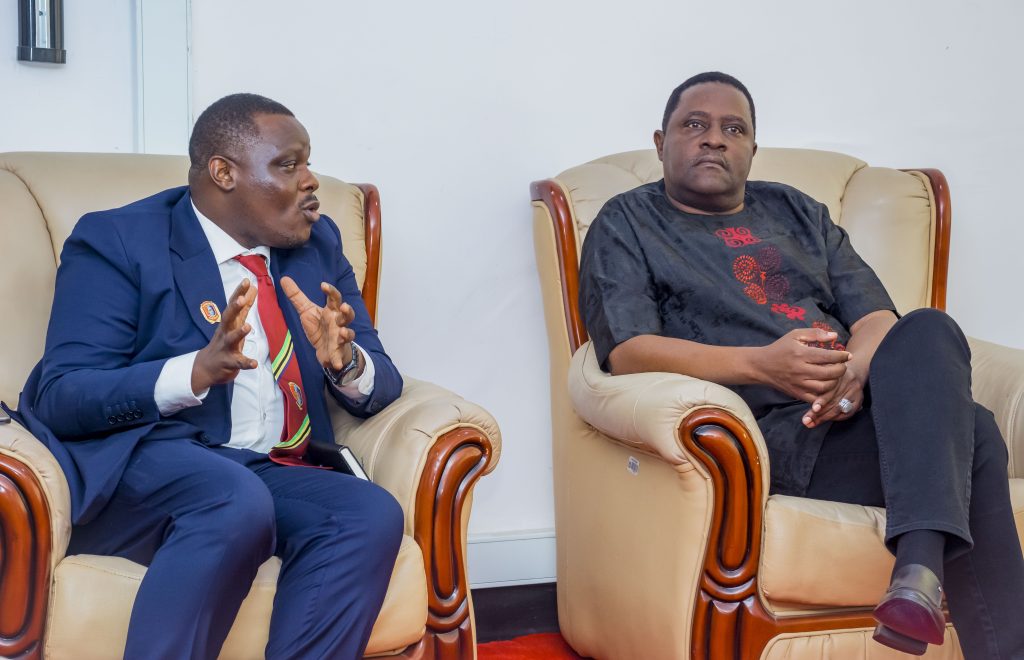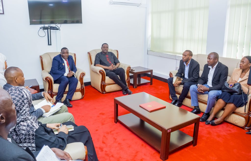Mkurugenzi wa Idara ya Miliki wa Wakala wa Majengo Tanzania (TBA) Bw. FRV Said Mndeme (kushoto) akizungumza na Mkuu wa Mkoa wa Pwani, Mhe. Abubakar Kunenge wakati alipofika Ofisi kwake leo Oktoba 24, 2025 Mkoa wa Pwani kwa ajili ya kufanya ukaguzi wa viwanja vinavyomilikiwa na taasisi hiyo mkoani Pwani kwa lengo la kuvilinda dhidi ya uvamizi na uendelezaji wa miradi ya makazi. (PICHA NA NOEL RUKANUGA)