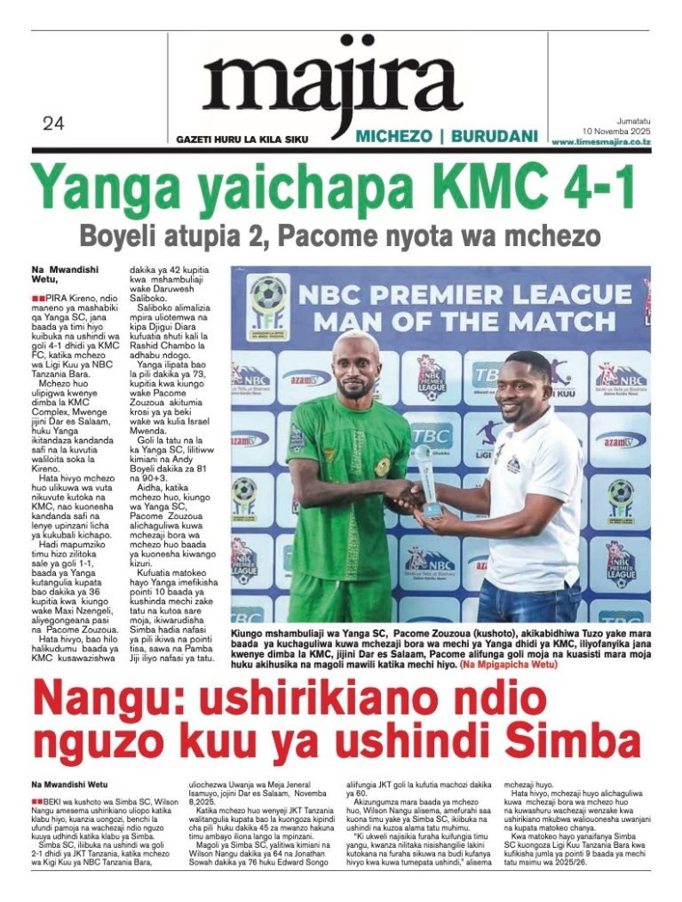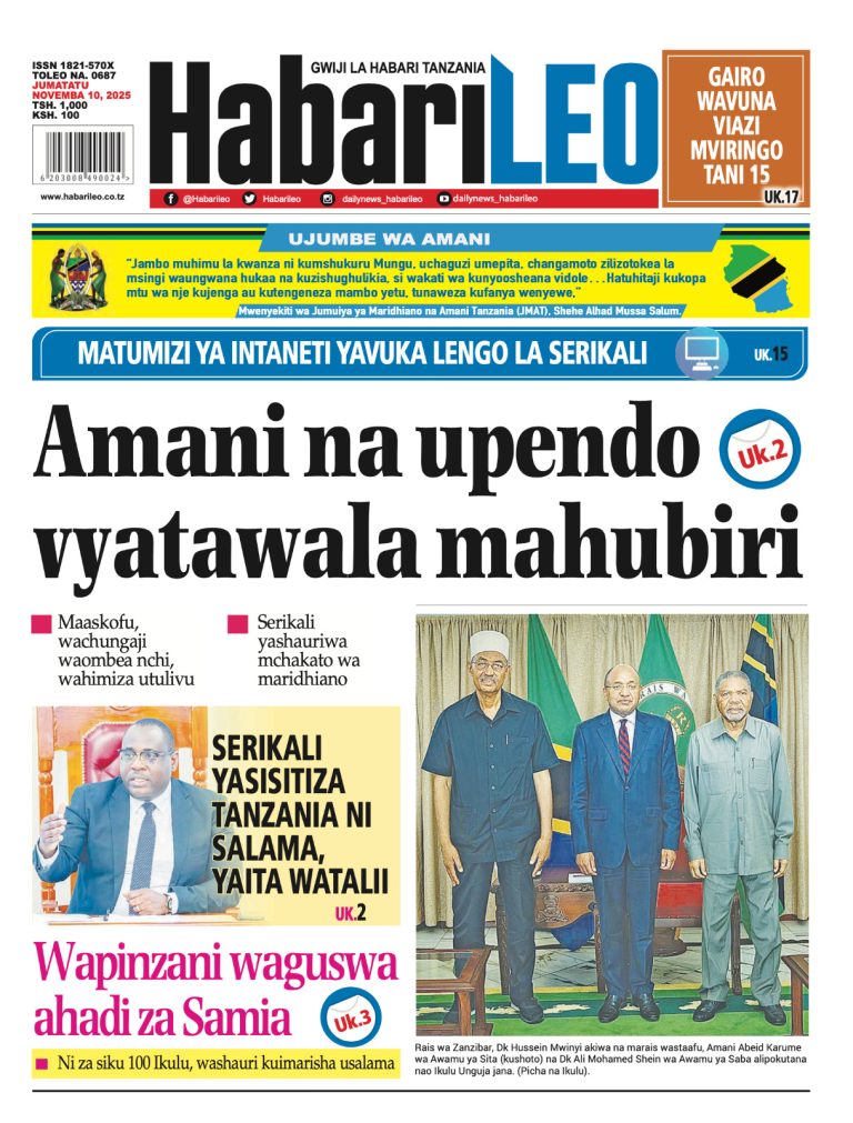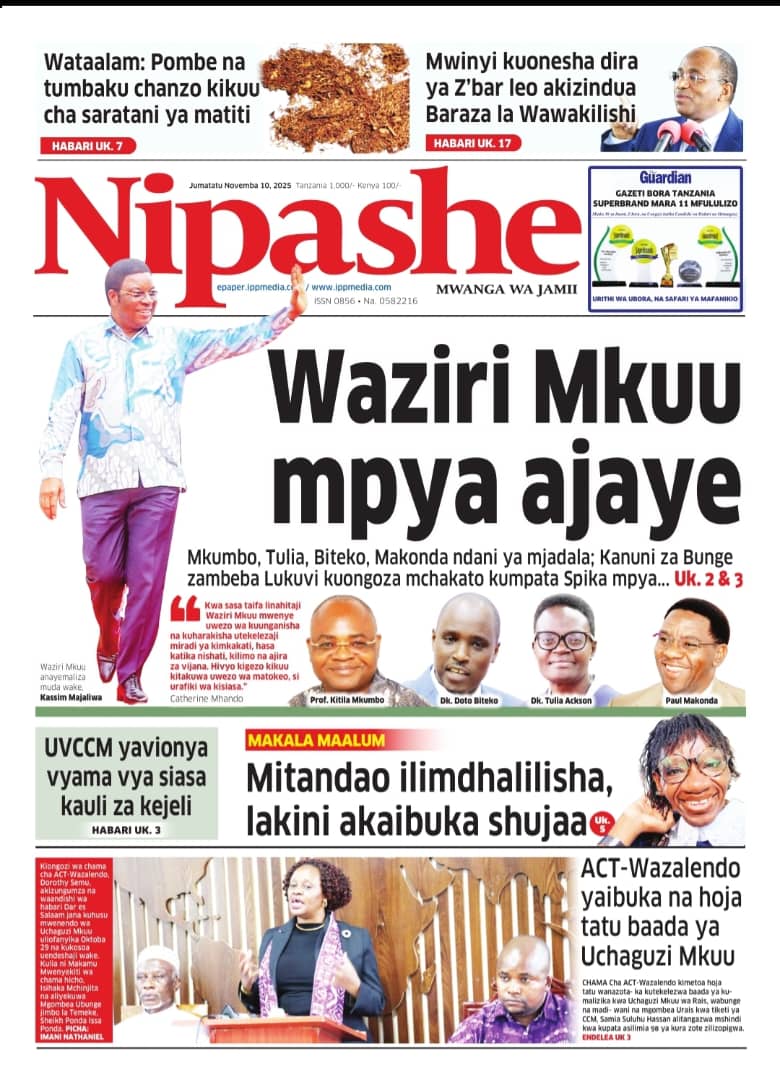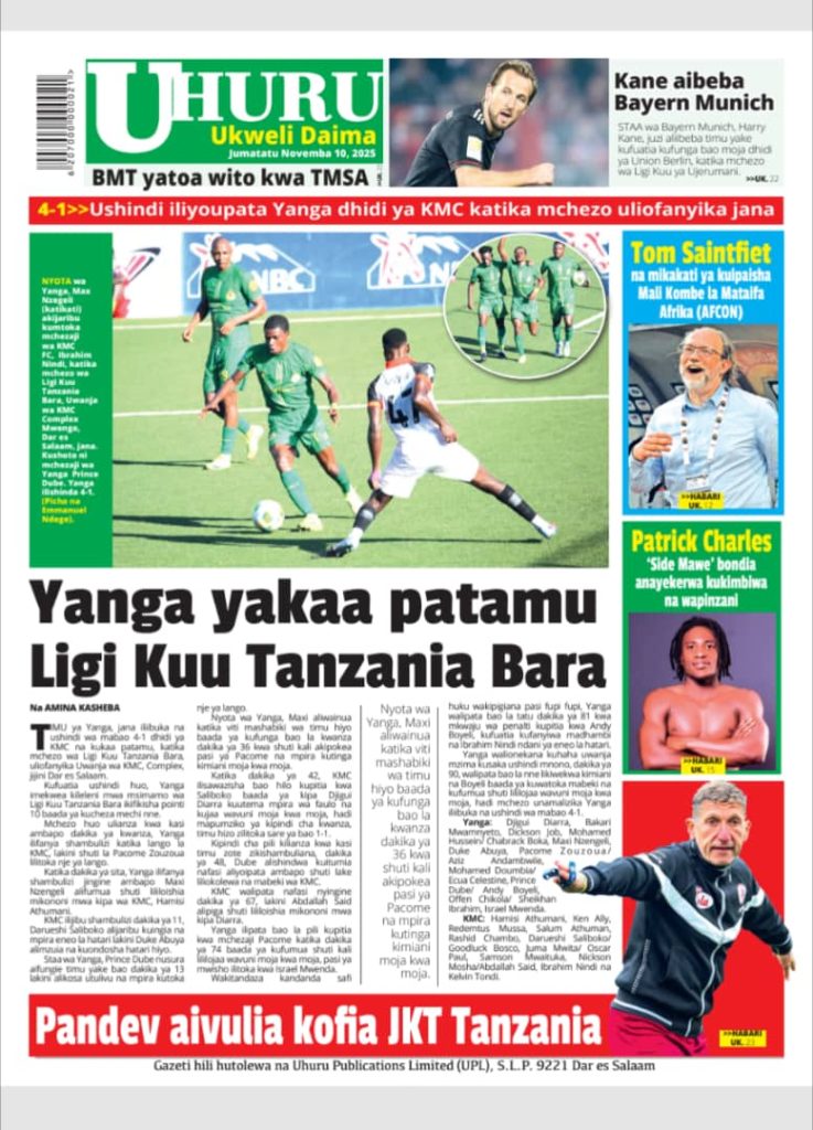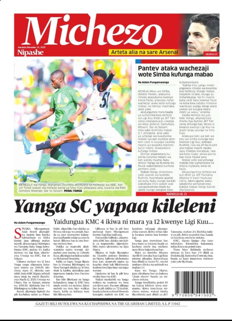 10/11/2025 0 Comment 0 Views HAYA HAPA MAGAZETI YA LEO NOVEMBA 10, 2025 by Suzzy Mathias United yamtisha Maresca TIC YAADHIMISHA KUMBUKIZI YA MWALIMU NYERERE KWA KUSHIRIKI UPANDAJI MITI JIJINI ARUSHA SHARE Michezo Burudani