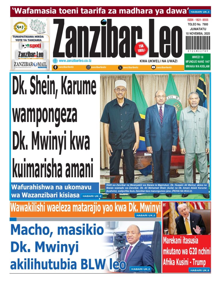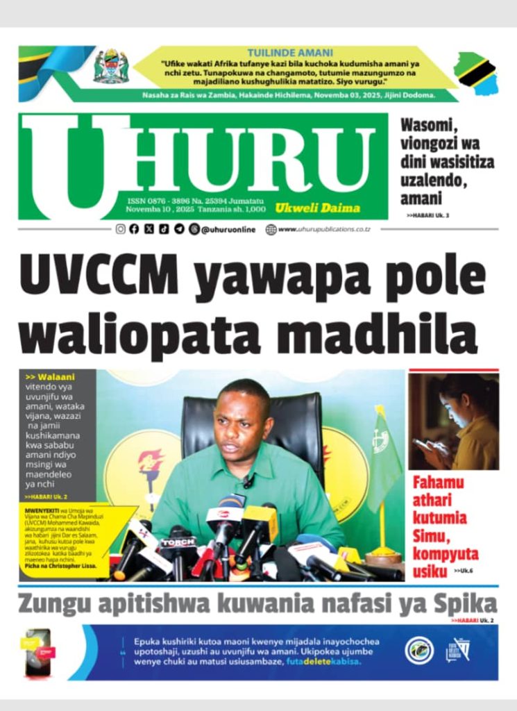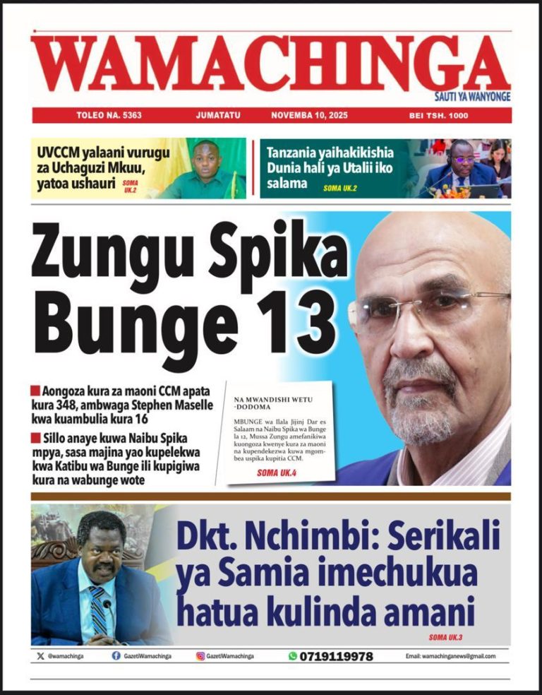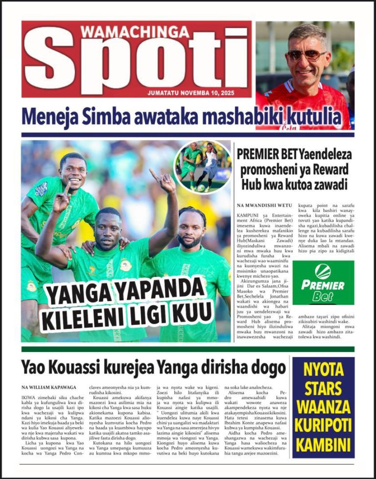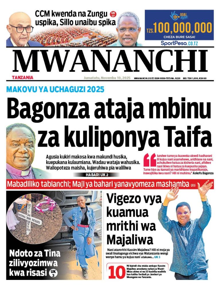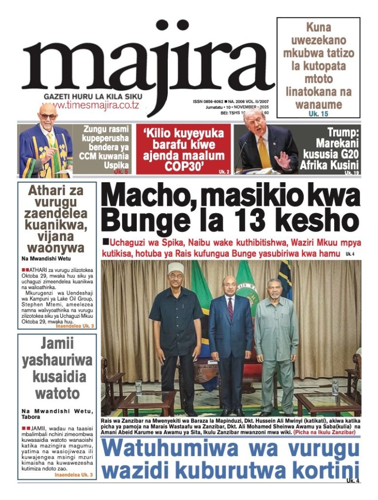 10/11/2025 0 Comment 0 Views HAYA HAPA MAGAZETI YA LEO NOVEMBA 10, 2025 by Suzzy Mathias United yamtisha Maresca TIC YAADHIMISHA KUMBUKIZI YA MWALIMU NYERERE KWA KUSHIRIKI UPANDAJI MITI JIJINI ARUSHA SHARE Michezo Burudani