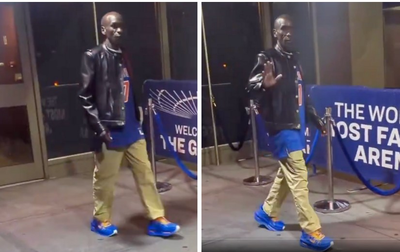 Katika klipu iliyovuma sana kwenye mitandao ya kijamii, kipenzi cha mashabiki wa riadha alionekana akitoka kwenye gari akiwa amevaa vazi la bluu la mchezo wa basketball, suruali ya njano, viatu vya bluu na koti jeupe la ngozi la rangi nyeusi.