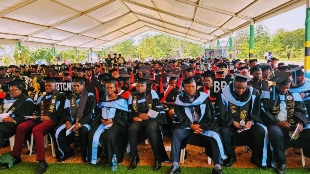Wahitimu wakiwa katika eneo la sherehe za mahafali.