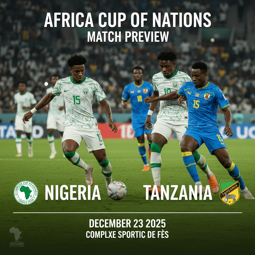 Timu ya Taifa ya Kandanda ya Nigeria itamenyana na Timu ya Taifa ya Soka ya Tanzania katika Hatua ya Makundi ya Kombe la Mataifa ya Afrika mnamo Desemba 23. Mechi hiyo inatarajiwa kuanza saa 20:30 kwa saa za kwenu.
