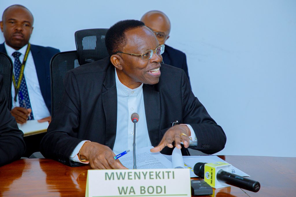 Kamishna Mkuu wa Mamlaka ya Mapato Tanzania, TRA, Bw. Yusuph Juma Mwenda, akizungumza jambo wakati wa kikao cha Waziri wa Fedha, Mhe. Balozi Khamis Mussa Omar (Mb) (hayupo pichani) na Bodi ya Wakurugenzi na Menejimenti ya TRA, wakati wa ziara yake ya kikazi katika Mamlaka hiyo, ikiwa na mara yake ya kwanza Tangu ateuliwe na Mhe. Dkt. Samia Suluhu Hassan, Rais wa Jamhuri ya Muungano wa Tanzania kushika wadhifa huo hivi karibuni.