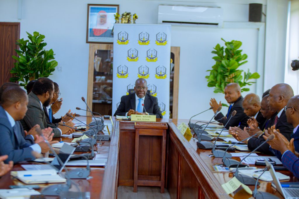 Waziri wa Fedha, Mhe. Balozi Khamis Mussa Omar (Mb), akiongoza kikao chake na Bodi ya Wakurugenzi na Menejimenti ya TRA, wakati wa ziara yake ya kikazi katika Mamlaka hiyo, ikiwa na mara yake ya kwanza Tangu ateuliwe na Mhe. Dkt. Samia Suluhu Hassan, Rais wa Jamhuri ya Muungano wa Tanzania kushika wadhifa huo hivi karibuni.